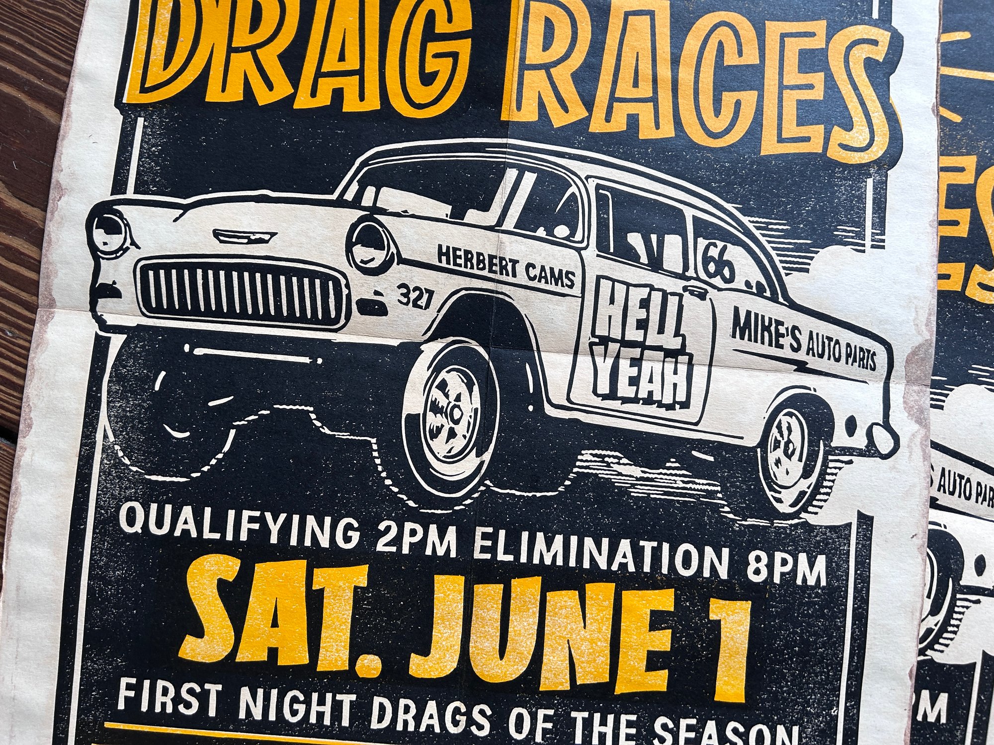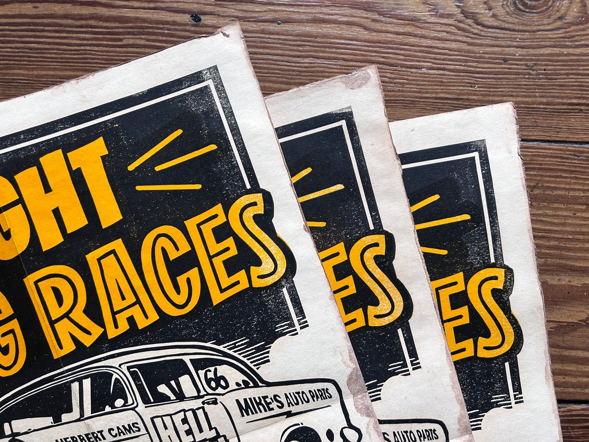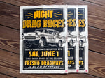 Fresno Night Drag Races Linocut Print (black edition) FREE SHIPPING