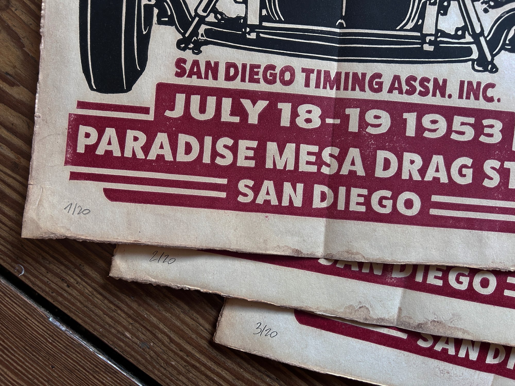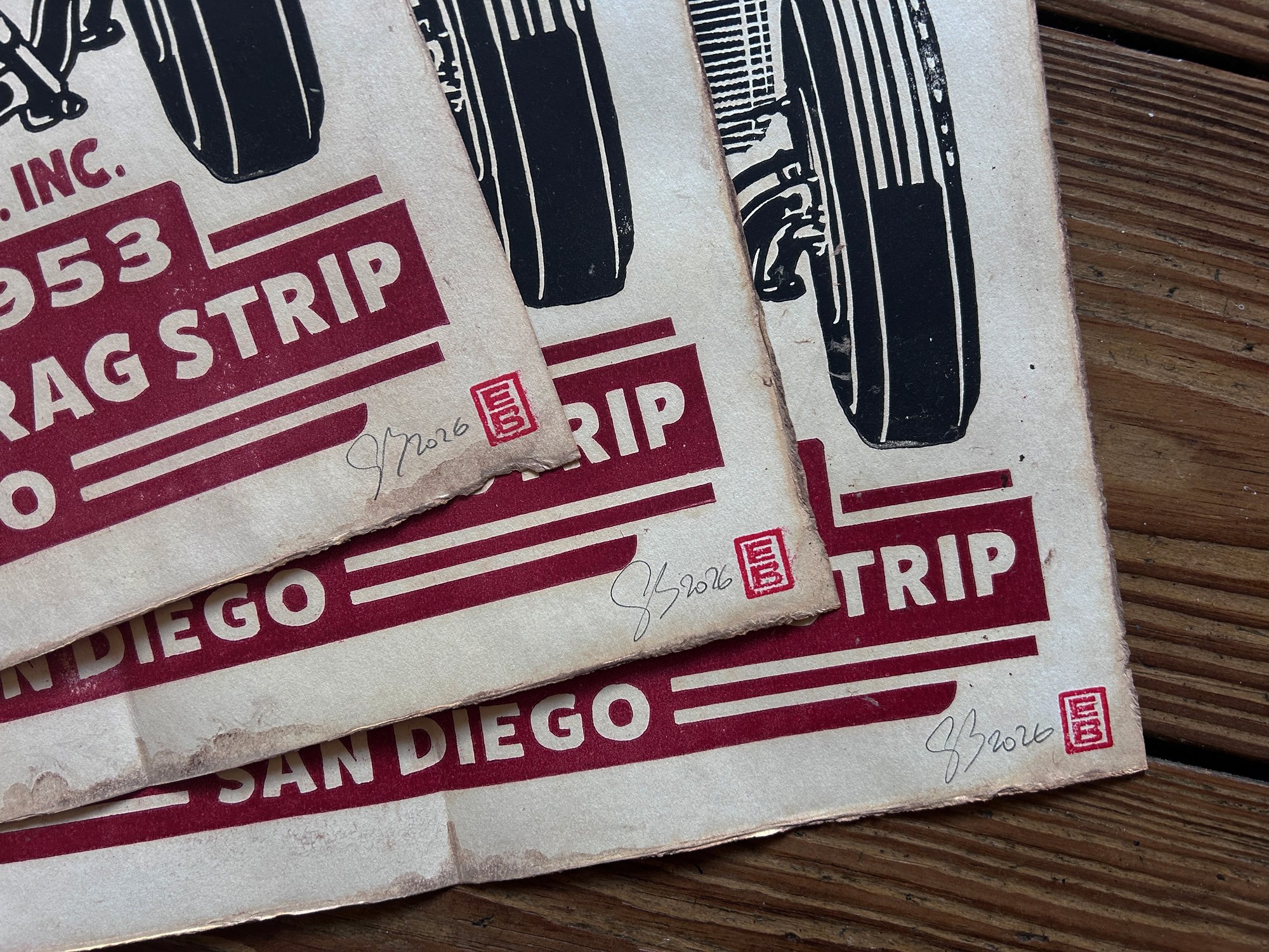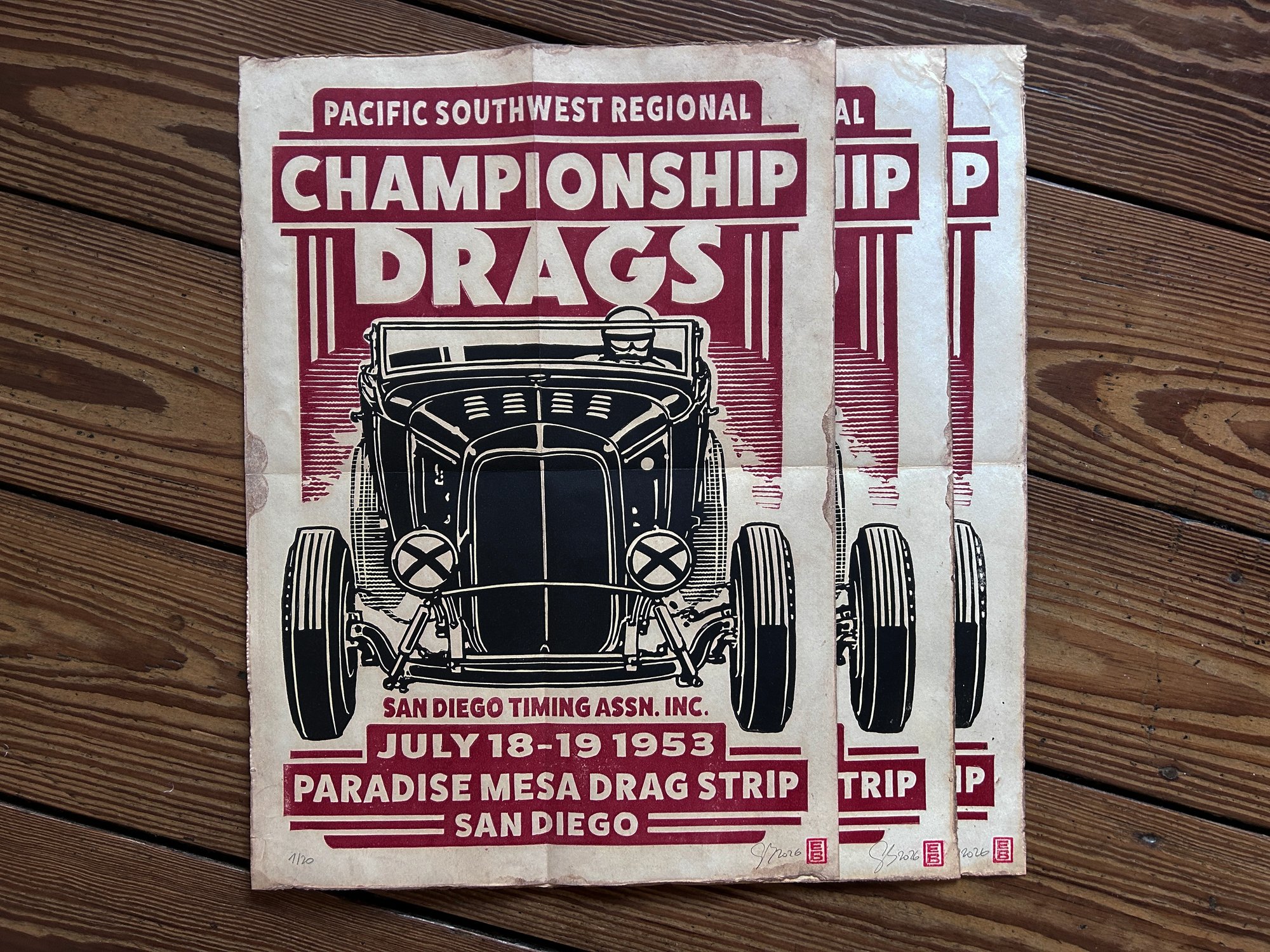 Paradise Mesa Championship Drags Linocut Print FREE SHIPPING