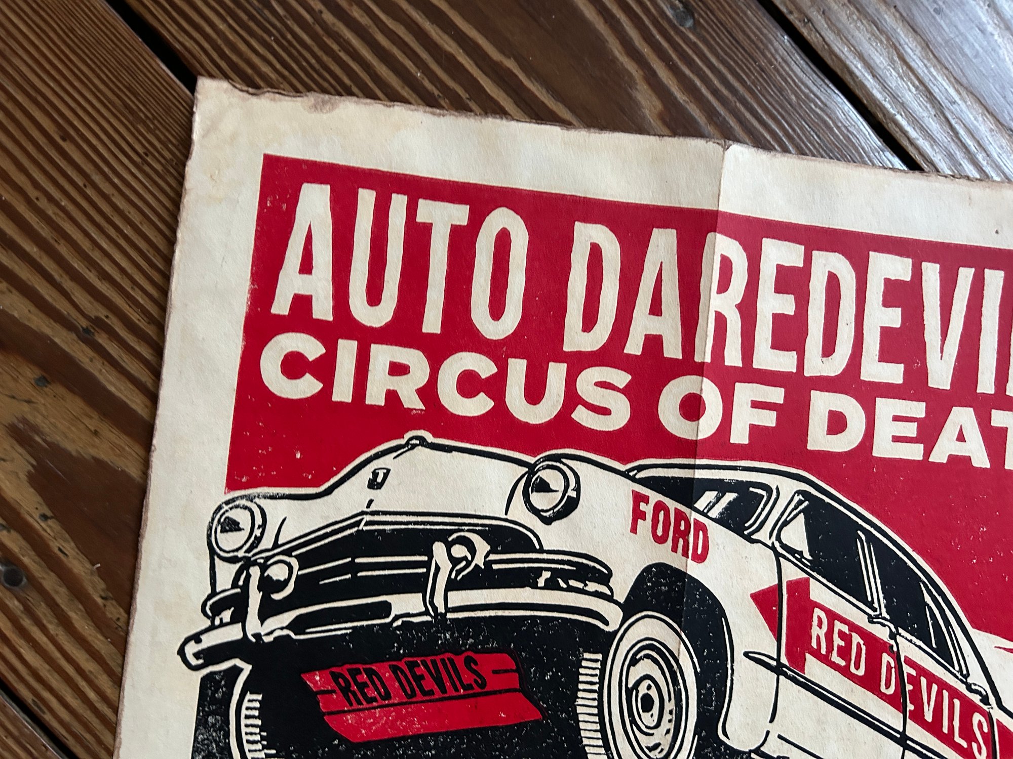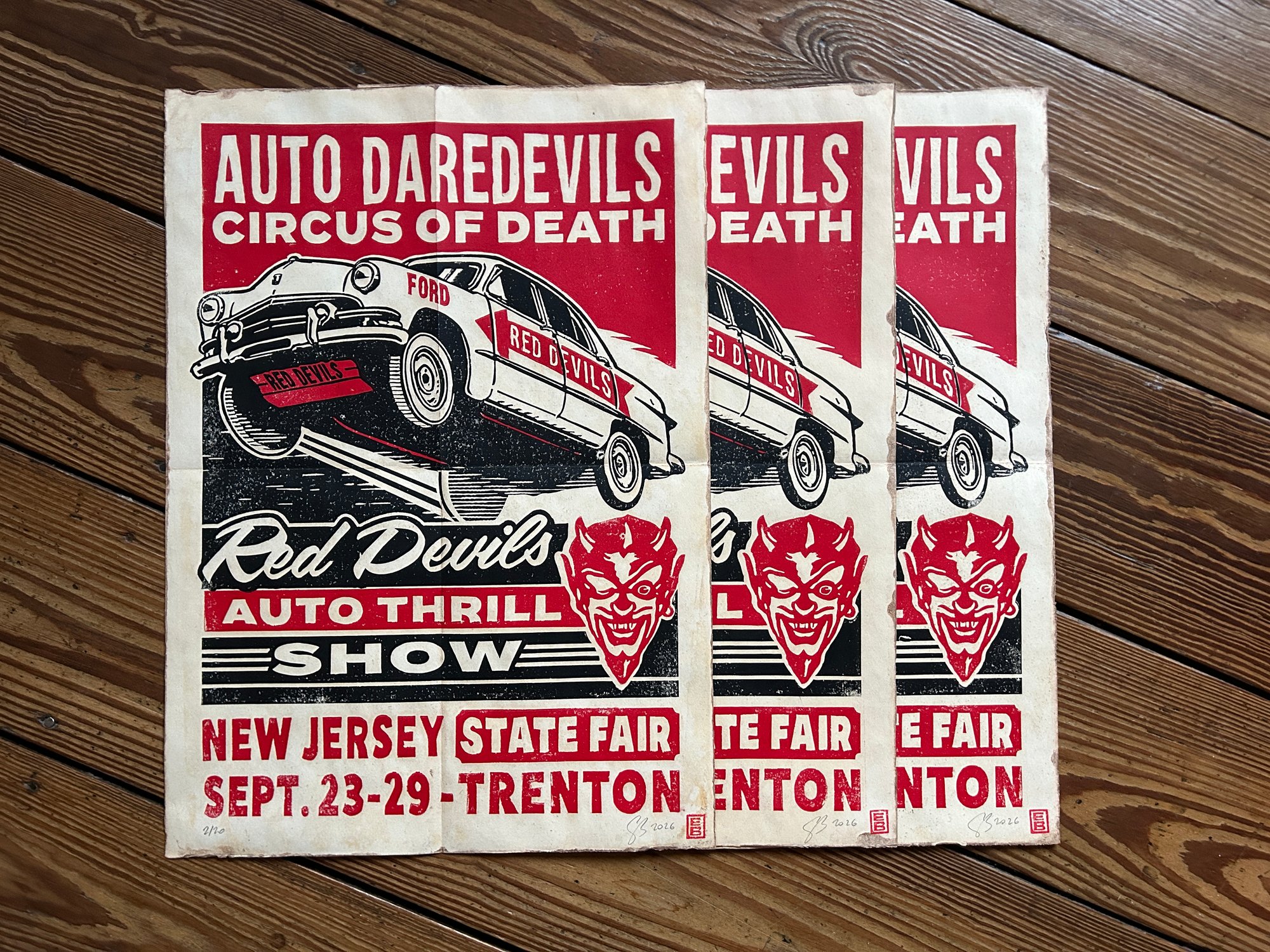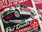 Red Devils Auto Daredevils Linocut Print FREE SHIPPING
